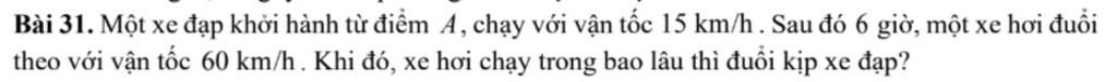 Gọi thời gian xe hơi đuổi kịp xe đạp là `x(h)(x>0)`