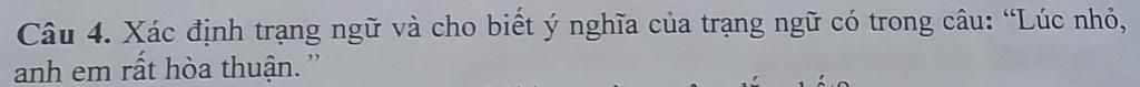 Xác định trạng ngữ và cho biết ý ngĩa của trạng ngữ có trong câu : "lúc nhỏ , anh em rất hòa thuận "