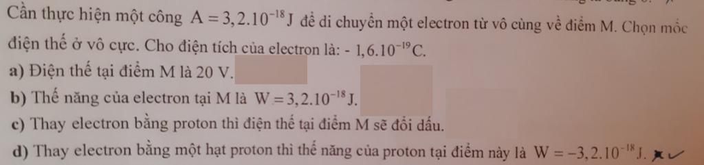 Em cũng làm là a,b,c sai mà cô em lại đọc đáp án là a đúng, cô bảo đó là công mà ta thực hiện từ vô cực nên VM nhận giá trị âm, Tại cô giỏi của trường em năm trước chuyển đi rồi cô khác dạy không bt có đúng ko nữa nên em hỏi anh ạ