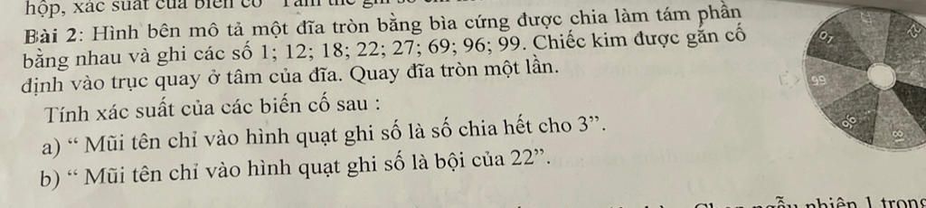 Xác xuất mũi tên chỉ vào hình quạt ghi số là bội của `22: 1/8`