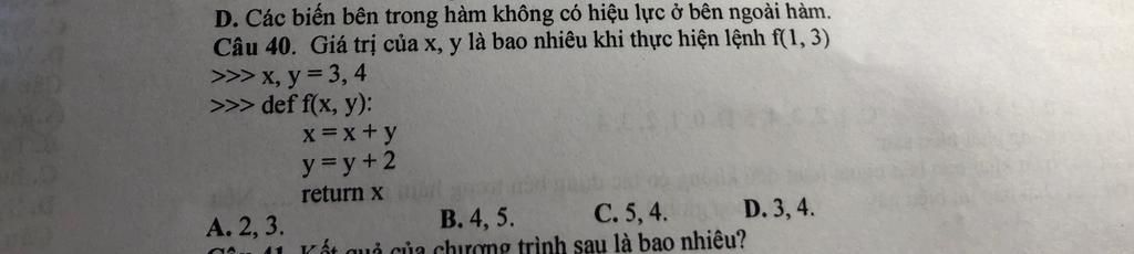 return x chỉ trả về giá trị của x là 4, y vẫn có giá trị là 3