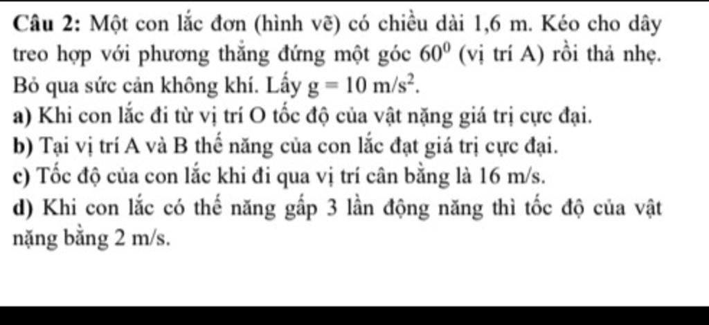 a) Khi con lắc đi qua VTCB, tốc độ của nó cực đại