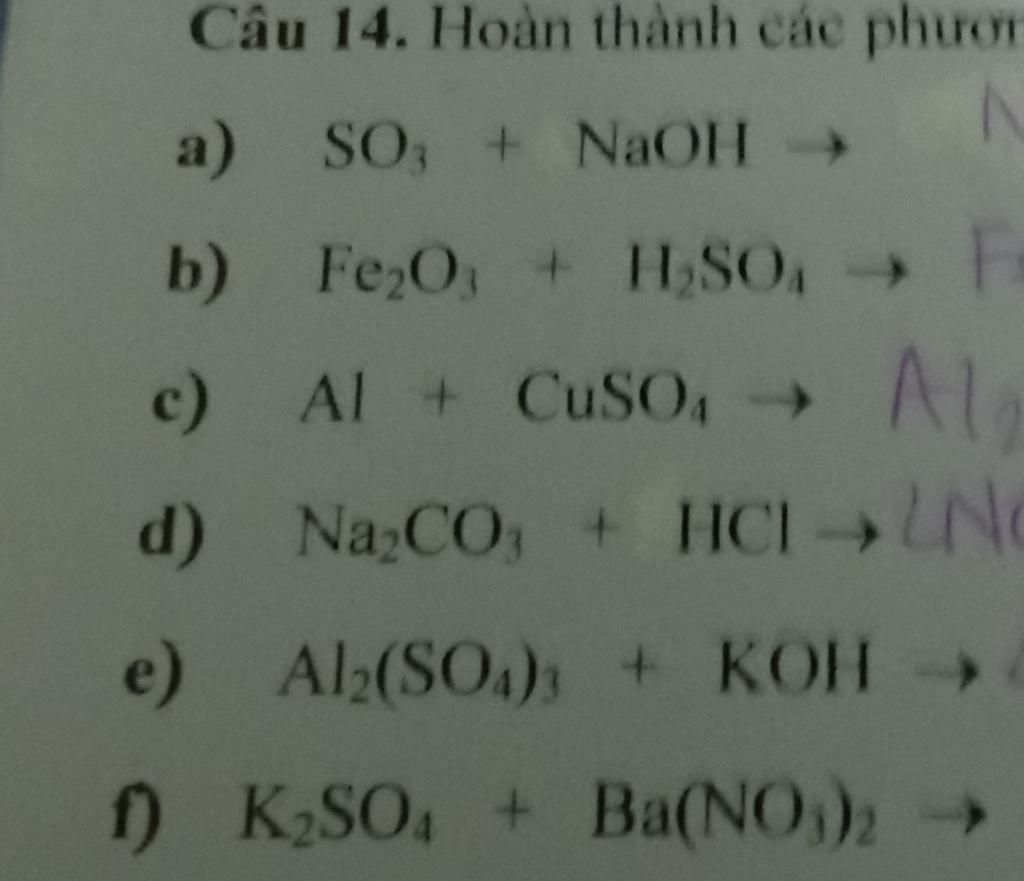 e/ Al2(SO4)3 + 6KOH → 2Al(OH)3 ↓ + 3K2SO4