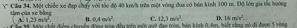 Độ lớn gia tốc hướng tâm của xe :