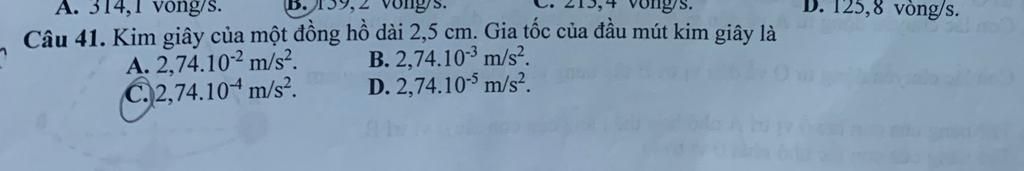 Gia tốc của đầu mút kim giây :