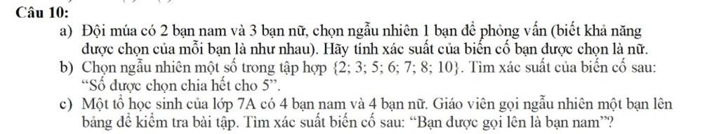 Xác suất của biến cố bạn được gọi là bạn nam là: