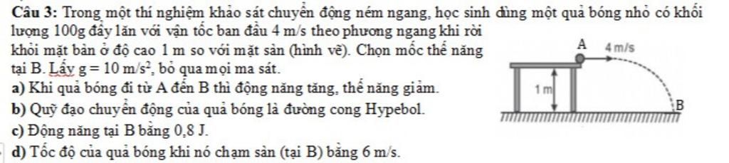 `to` Quỹ đạo chuyển động của quả bóng là đường Parabol.