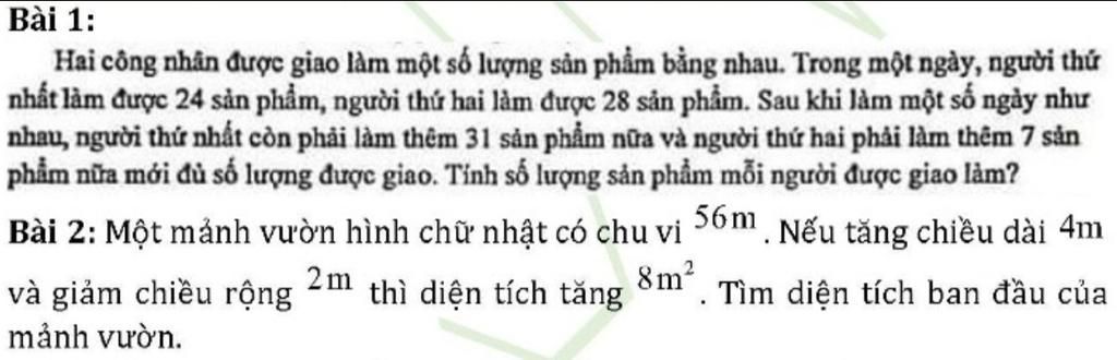 Mà 2 công nhân được giao làm số sản phẩm như nhau