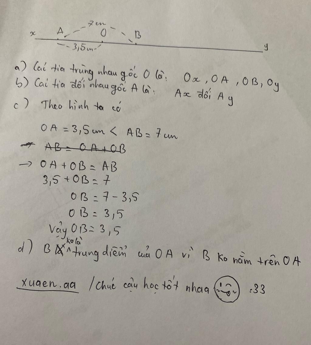 a) Viết tên các tia trùng nhau gốc O. b) Viết tên các tia đối nhau gốc A.