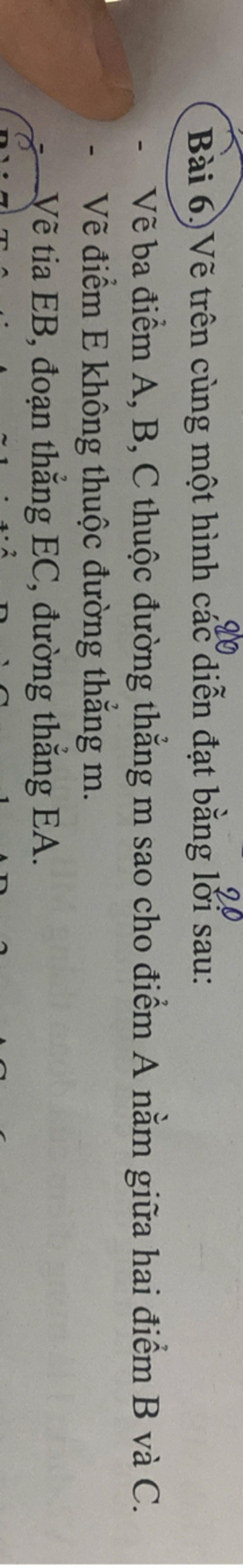 Vẽ tia EB, đoạn thẳng EC, đường thẳng EA.