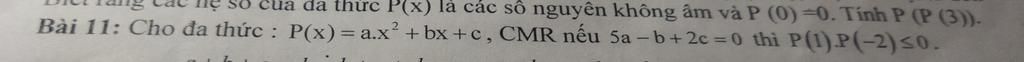 ⇒ $P_{(-2)}$ + $P_{(1)}$ = 5a - b +2c = 0 (theo đề)