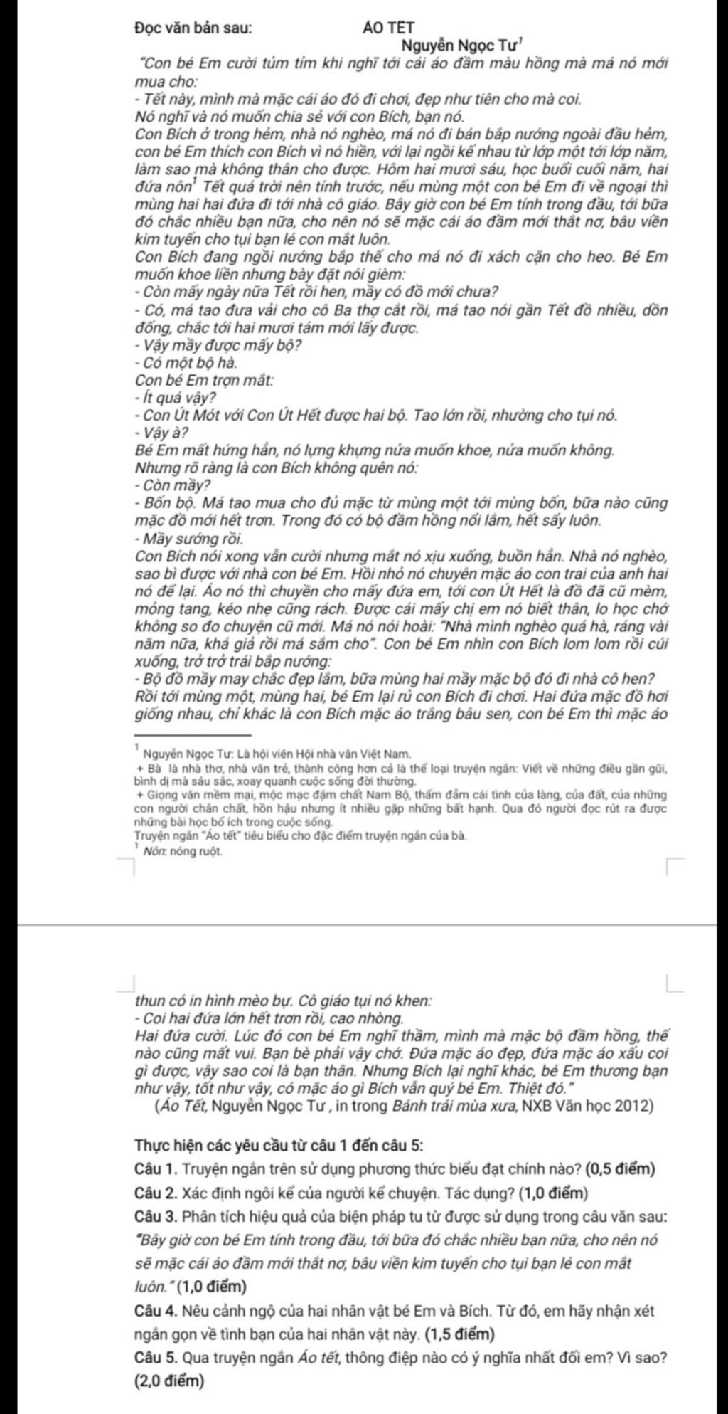 4. Nhân vật Em là đứa bé được sinh ra trong gia đình khá giả, được hưởng đầy đủ điều kiện vật chất và được mẹ mua cho nhiều quần áo mới xúng xính dịp Tết. Nhân vật Bích là đứa bé được sinh ra trong gia đình nghèo, lại còn là chị cả, nên vất vả, chăm lo cho các em và chẳng đòi hỏi mẹ phải sẵm sửa gì cho mình cả.
