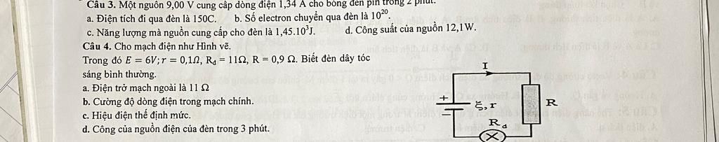 c) Năng lượng nguồn cung cấp cho đèn là: