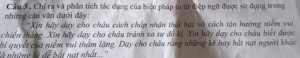 `-` Bptt: điệp ngữ chuyển tiếp "Xin hãy dạy cho cháu" và điệp ngữ cách quãng "bắt nạt"