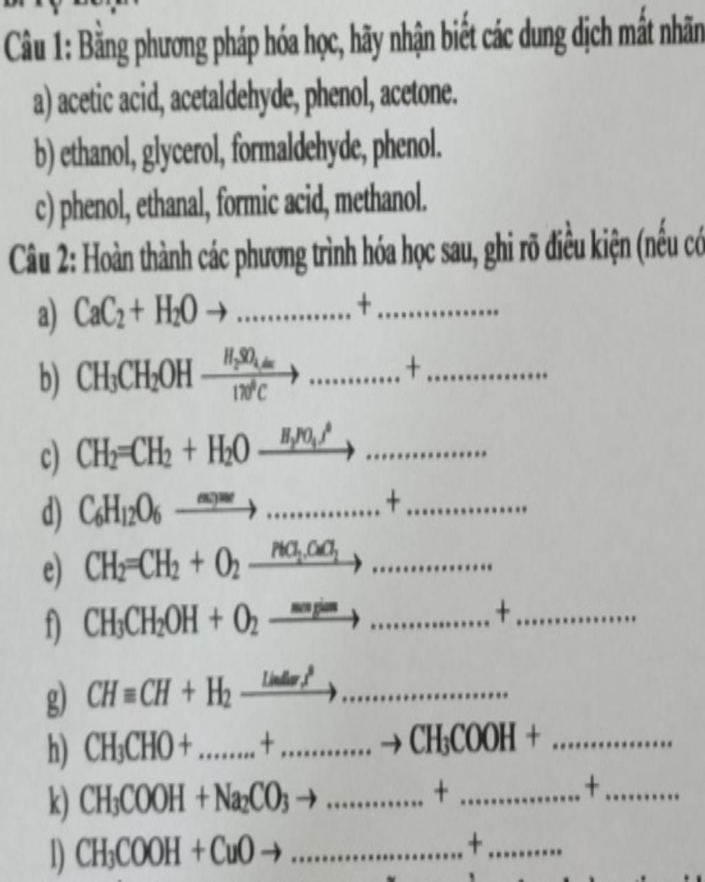 Câu 1: Bằng phương pháp hóa học, hãy nhận biết các dung dịch mất nhãn