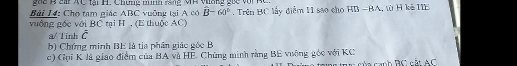 => ABE = HBE ( 2 góc tương ứng ) .