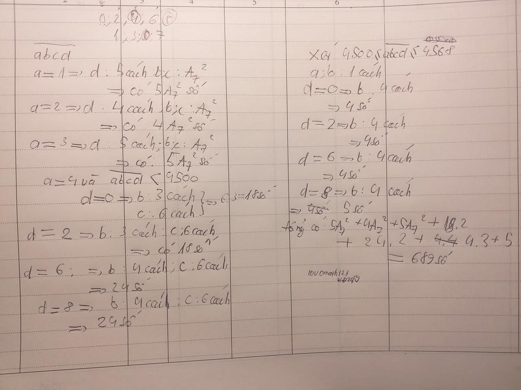 Vì `d` chẵn(`\overline{abcd}` chẵn) `=> d` có `4` cách chọn(`d \ne 4)