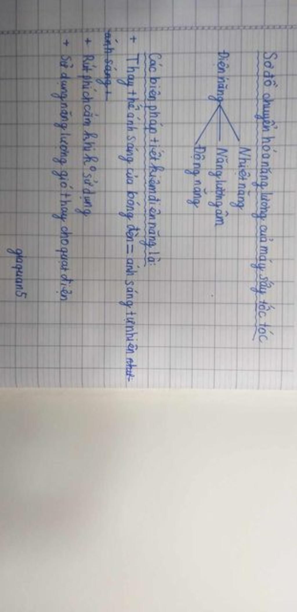 Khi bật máy sấy tóc, sự chuyển hoá năng lượng diễn ra như thế nào ? Hãy đề xuất các biện pháp tiết kiệm điện năng?