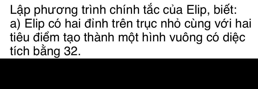 Phương trình chính tắc của elip, có hai đỉnh trên trục nhỏ cùng với hai tôi điểm tạo thành một hình vuông có diện tích bằng 32