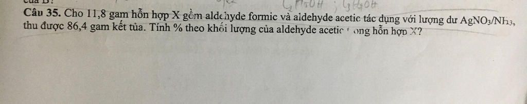 Gọi a, b lần lượt là số mol của aldehyde formic và aldehyde acetic.