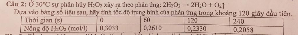 Tốc độ trung bình của phản ứng trong $\rm 120$ giây đầu tiên: