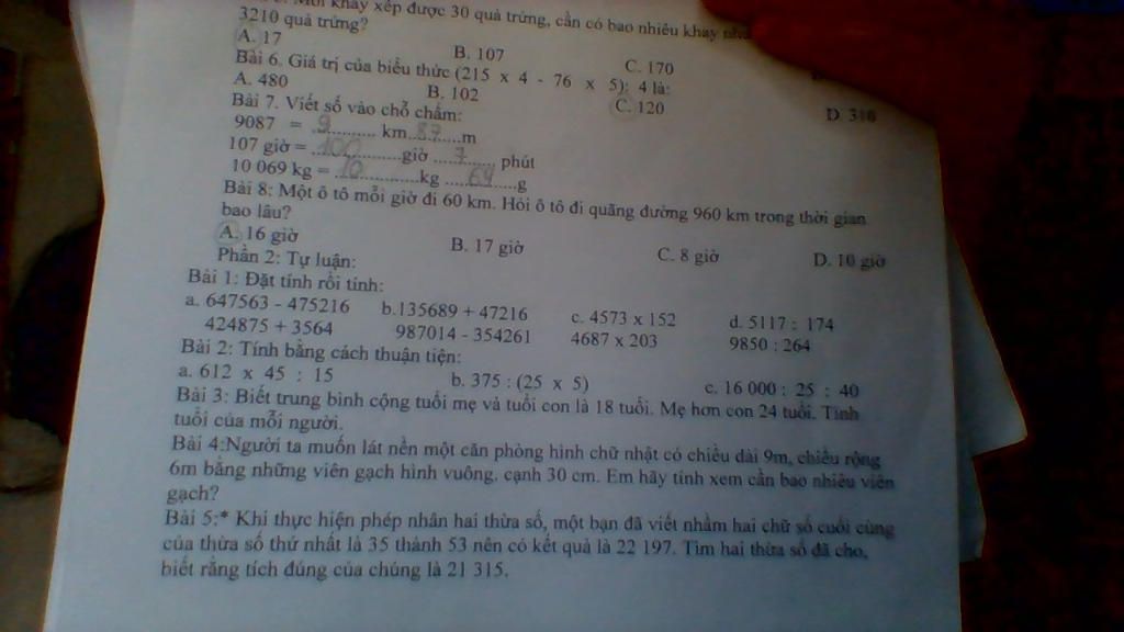 Đáp số: Mẹ: $30$ tuổi.