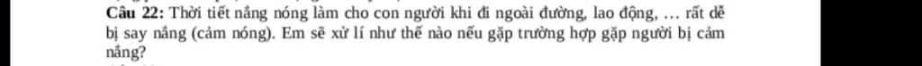 Nếu gặp người bị say nắng, thì có thể xử lí như sau:
