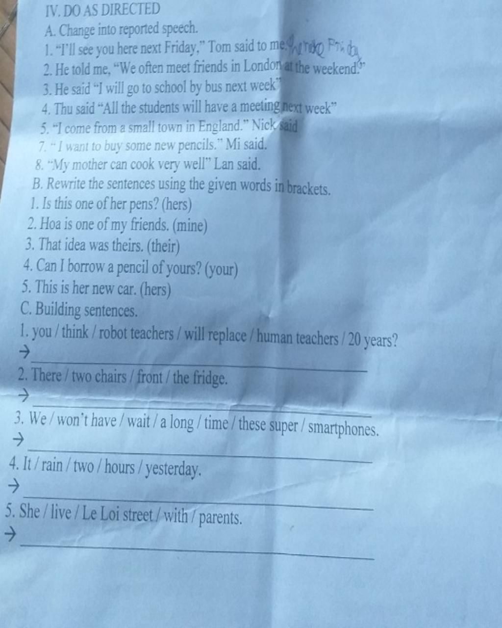 7. Mi said that she wanted to buy some new pencils.