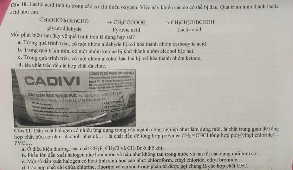 d, Sai. Ba chất trên thuộc loại hợp chất tạp chức.