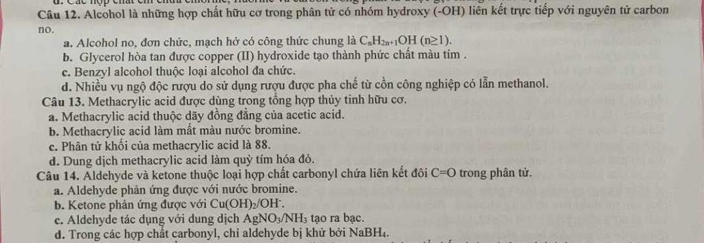 a, Sai. Methacrylic acid $CH_2=C(CH_3)COOH$ là acid không no còn $CH_3COOH$ là acid no.