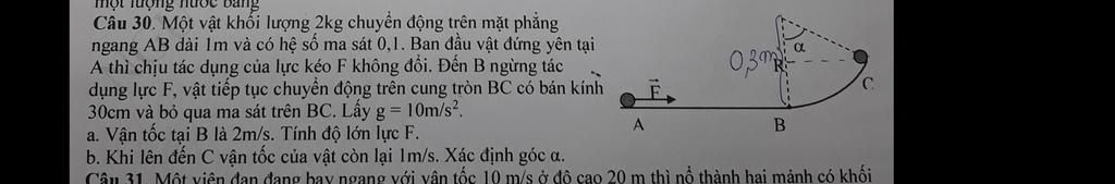WB=WC (=) (mvB²)/2 = (mvC²)/2 + mgr(1-cos ∝) (=) (2.2²)/2 = (2.1²)/2 +2.10.0,3(1- cos ∝)