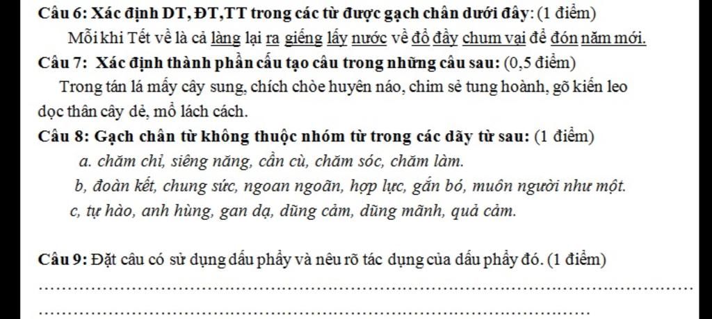 Câu `9:` Đặt câu có sử dụng dấu phẩy: