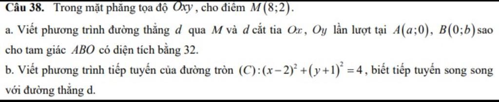 `b) 4x + 16y + 32sqrt{17} + 8 = 0` hoặc `4x + 16y - 32sqrt{17} + 8 = 0`