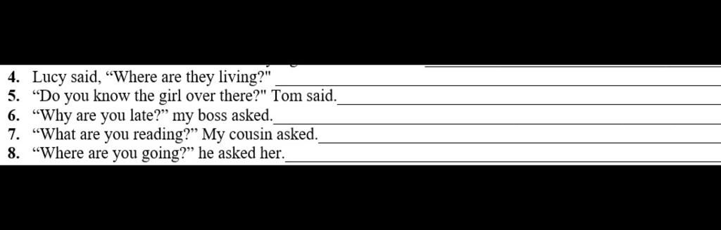 `@` S + asked/wondered/wanted to know/... + Wh-question + S + V(lùi thì) + O .