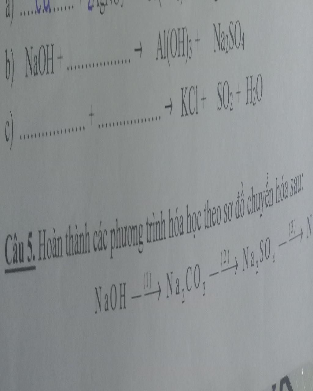 $\rm b) NaOH + Al_2(SO_4)_3 \xrightarrow{} Al(OH)_3 +Na_2SO_4$