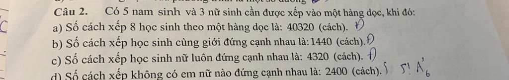 d.Số cách xếp không có em nữ nào đứng cạnh nhau là: