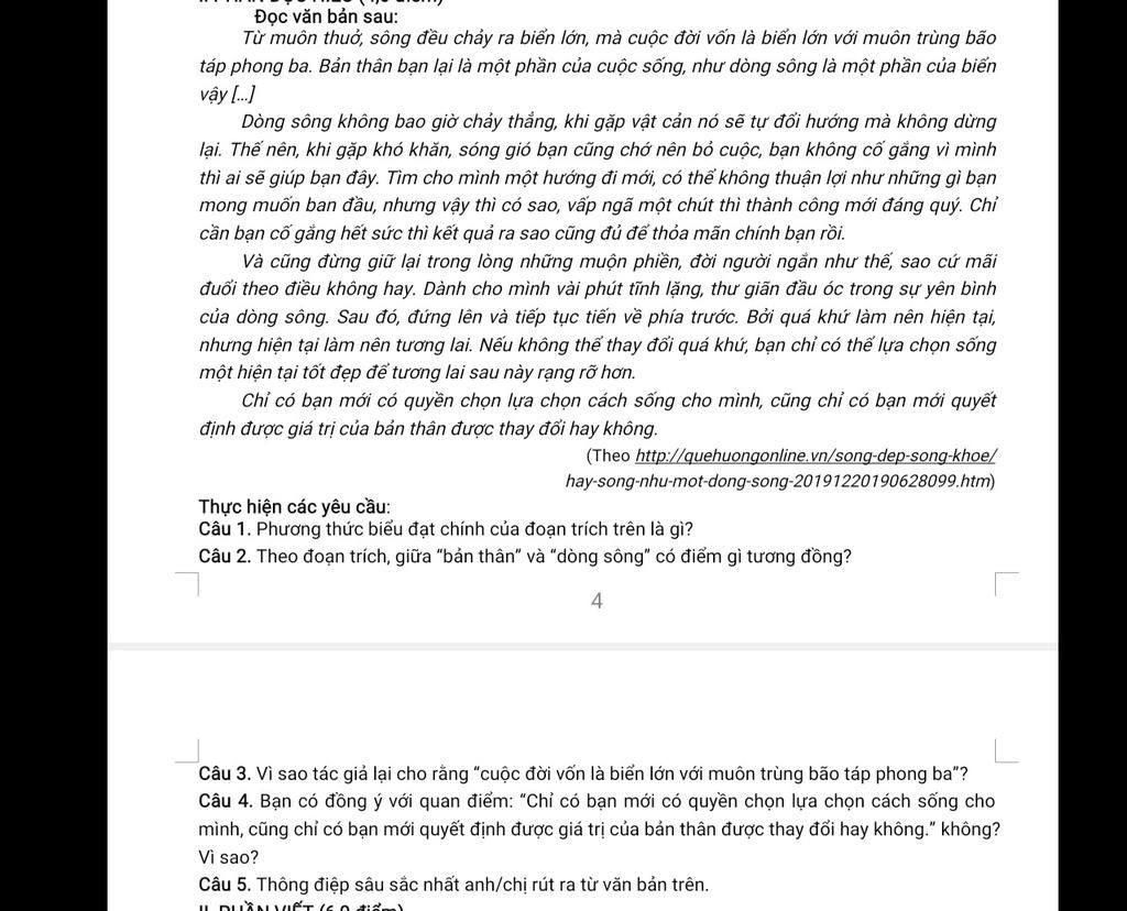 Thông điệp sâu sắc đối với em, đó là: sống không được từ bỏ, cuộc sống ngày là của chính mình, bản thân phải làm chủ và không được chùn bước trước khó khăn thử thách. Cuộc đời con người không chỉ tồn tại một con đường, nếu khó khăn ở đây ta tìm cách giải quyết rẽ hướng khác, mạnh mẽ bước qua khó khăn; không sợ thử thách. Luôn tin tưởng vào bản thân, tin vào năng lực và hiểu một điều rằng cuộc đời này là của mình do mình làm chủ chứ không phụ thuộc vào số phận.