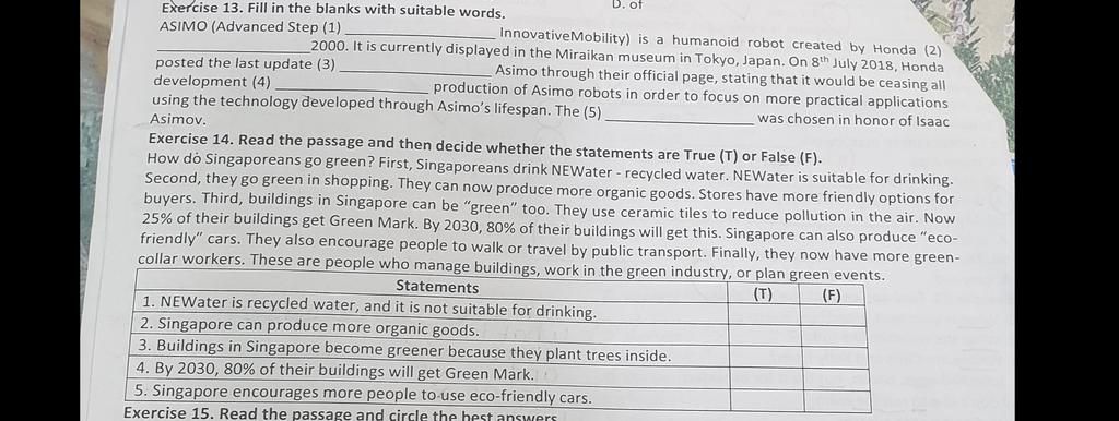 `3.` F: Buildings in Singapore become greener not because they plant trees inside, but because they use ceramic tiles to reduce pollution and aim to achieve the Green Mark certification.