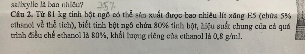 Theo tỉ lệ phản ứng, cứ $162$ gam tinh bột tạo ra $46.2=92$ gam ethanol
