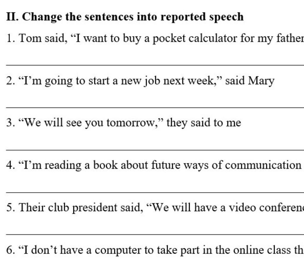 1. Tom said that he wanted to buy a pocket calculator for his father.