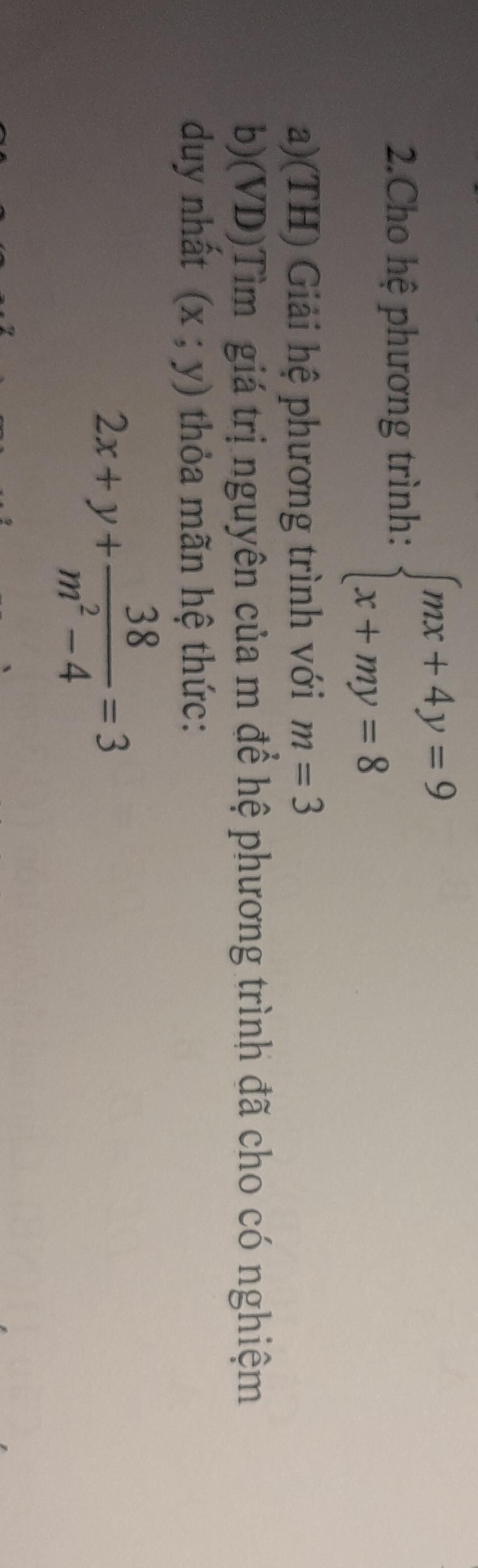 b)(VD)Tìm giá trị nguyên của m để hệ phương trình đã cho có nghiệm