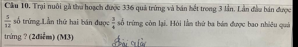 Lần thứ ba bán được số quả trứng là: