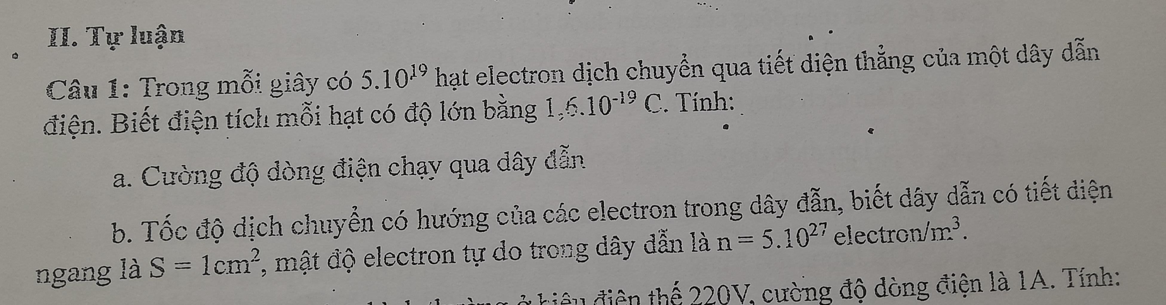 `b.` Tốc độ dịch chuyển có hướng của các electron trong dây dẫn: