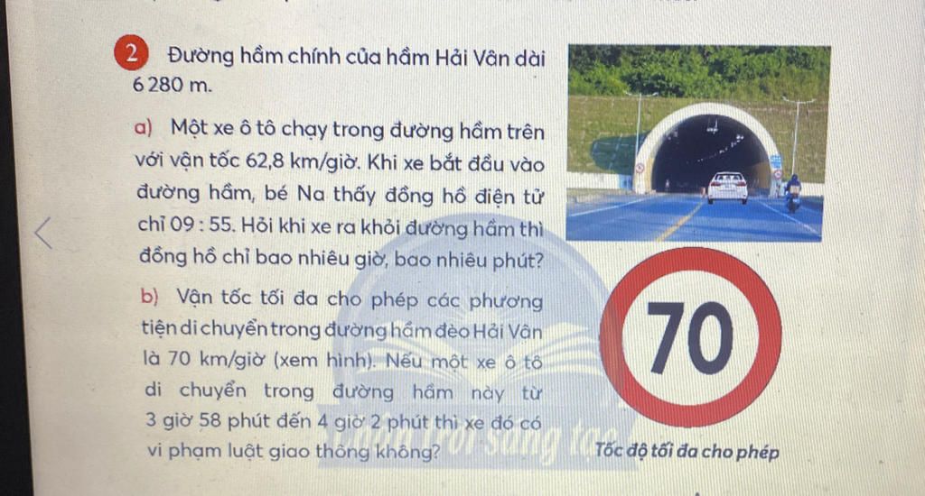 Thời gian xe ô tô chạy hết đường hầm với vận tốc 62,8km/h là:
