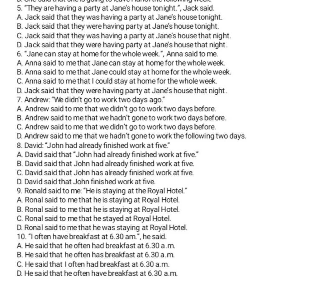 `@` Trức tiếp sang gián tiếp câu kể: