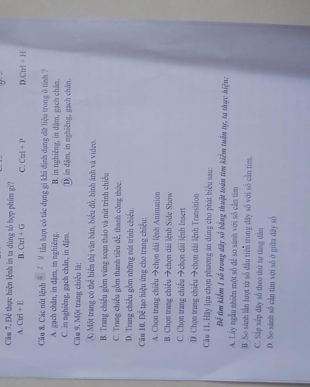 Câu 7. Để thực hiện lệnh in ta dùng tổ hợp phím gì?