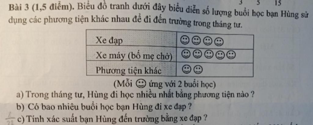 Mà bạn hùng đến trường bằng xe đạp là 8(buổi)