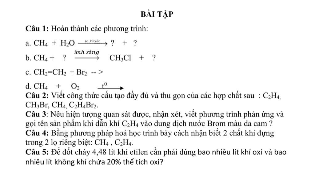c) C2H4( mk k viết đc giống hình nên viết này nha)+Br2-->C2H4Br2