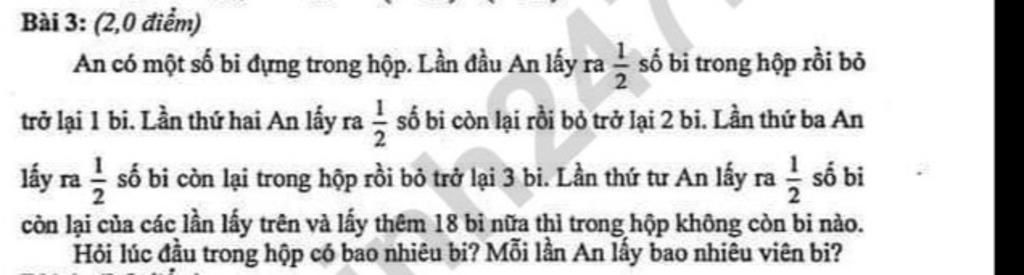 An có một số bị đựng trong hộp. Lần đầu An lấy ra - số bi trong hộp rồi bỏ