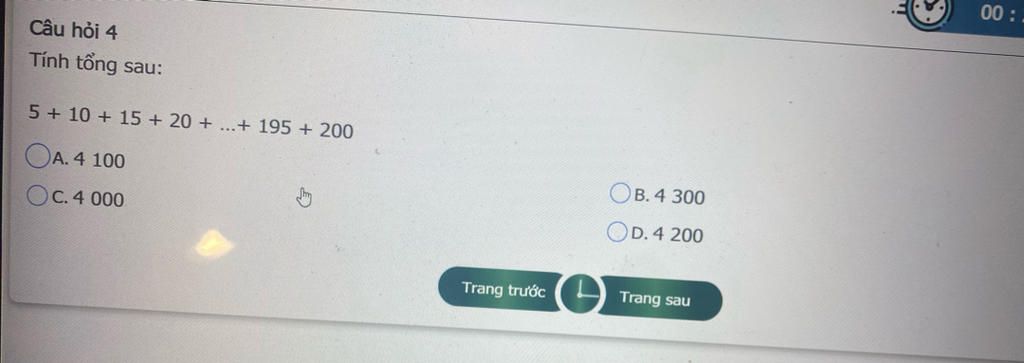 `5 + 10 + 15 + 20 + ... + 195 + 200`